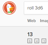 Oh dear, it seems like the DuckDuckGo search engine’s otherwise useful dice roller can’t handle a d100! I suppose I’ll be rolling a d10 twice. Note that in the following image and all future d100 rolls I’m taking the two results (the numbers in squares) rather than the numeric total in bold.